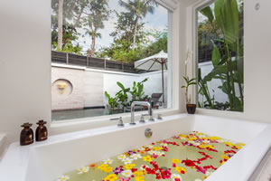 Each Grand Deluxe Villa is superbly designed and features a luxurious bathroom and a rain-shower outside.