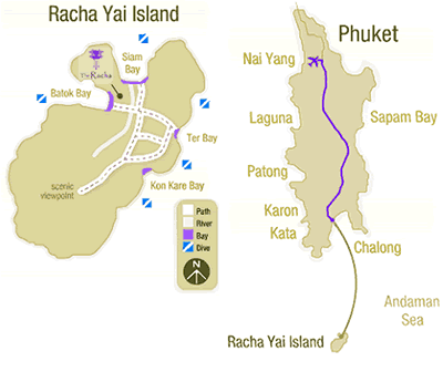 | Set on Batok Beach overlooking one of Thailand's most spectacular bays on Racha Yai Island, 12 miles to the south of Phuket. 45 minutes transfer from Phuket International Airport to Chalong Bay followed by an additional 30 to 45 minutes by sea. Batok Bay and the beach in front of the resort are public areas and are used by other boats and tourists during the winter months from November to April. | |